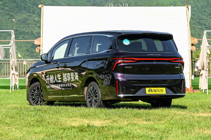 而它的侧面以及尾部设计也同样具备一定特点,首先是侧面部分,这款车型的车身结构采用的是“河川丽影式车身”结构设计,带来的是像山脉、水脉一样流畅舒展感觉,而且这样的设计风格营造出蜿斑流长的山河壮阔之美,同时也。寓意步步高升,青云直上,九阶极数也是身份尊贵的象征,从诸多细节方面,确实能够看出这款车型的设计寓意;而尾部的设计就比较简单,标准的MPV设计风格,方正的尾部造型搭配“张灯结彩LED尾灯”设计,它的灵感来源于年节里的灯笼元素,尽显欢乐之美;这样的设计风格对于如今千篇一律的汽车市场来说,确实属于一股清流,展现它东方美学的设计风格。