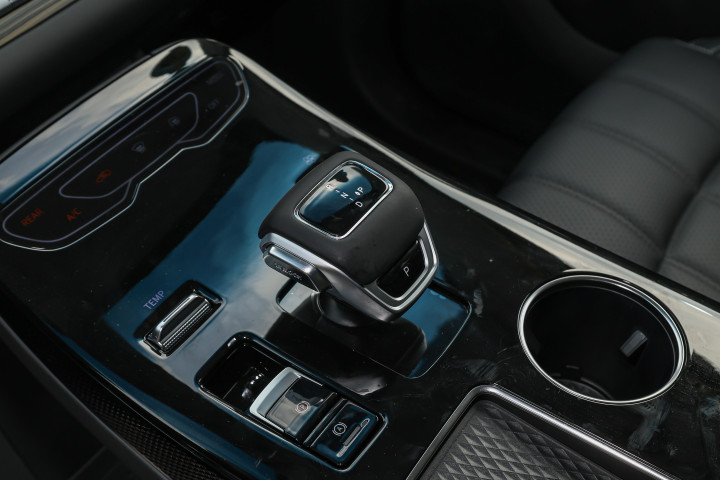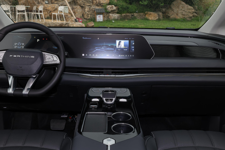 跟随镜头来到车辆的内部空间,首先映入眼帘的是这款车型精致的内饰设计风格,内饰以黑色为主,彰显出沉稳大气的一面,而且从细节方面能够发现,内饰在中控台、门板等位置均采用的是皮革包覆,无论是做工还是用料均为细腻,展现出这款车型的精致感,而且在配置方面,搭载有12.3英寸触控中控屏与12.3英寸液晶仪表,能够体现出这款车型的科技感,同时这款车型配备有8155芯片,能够带来的是流畅的操作体验感受,而且内置TAI 4.0智能车机系统,无论是导航还是人脸声纹识别、360°全景影像、四区语音识别功能、整车OTA升级均支持,带来智能化的用车体验。